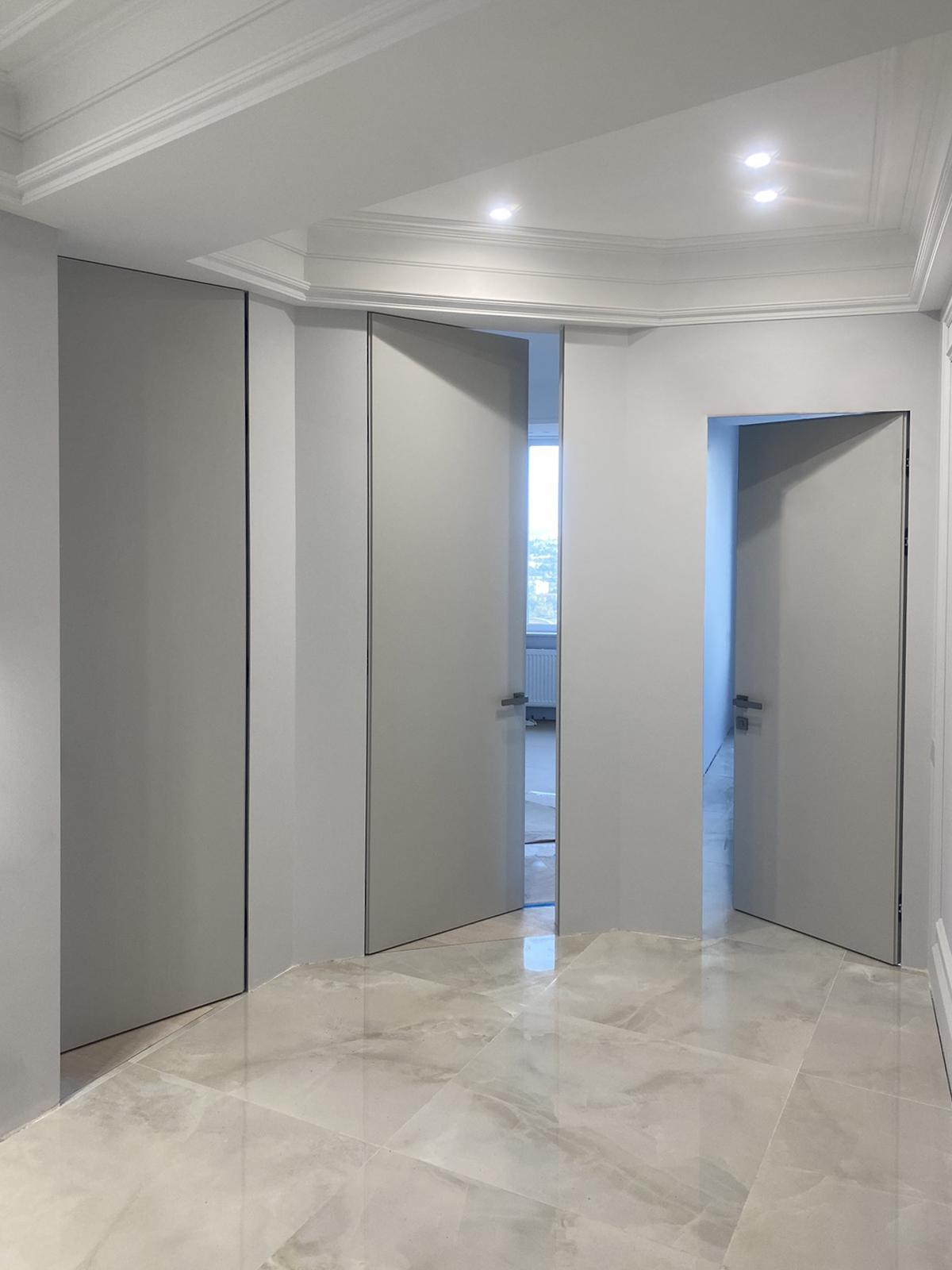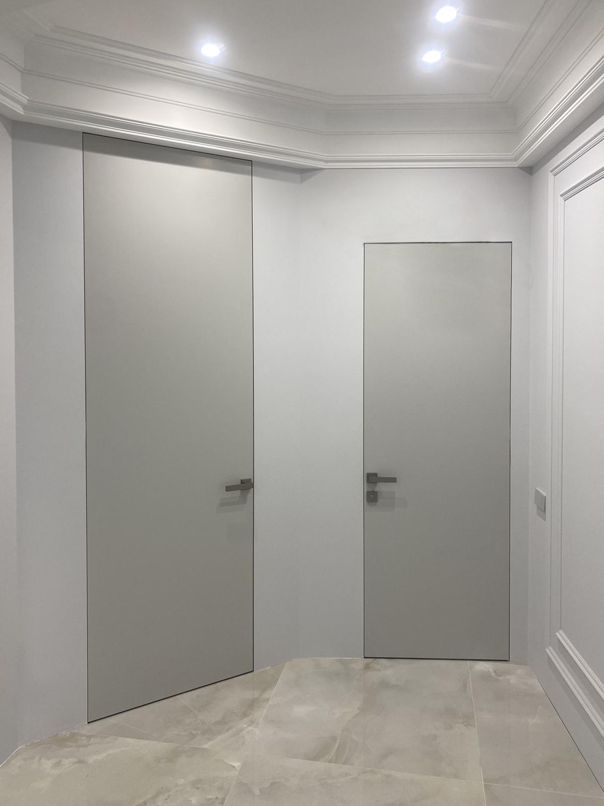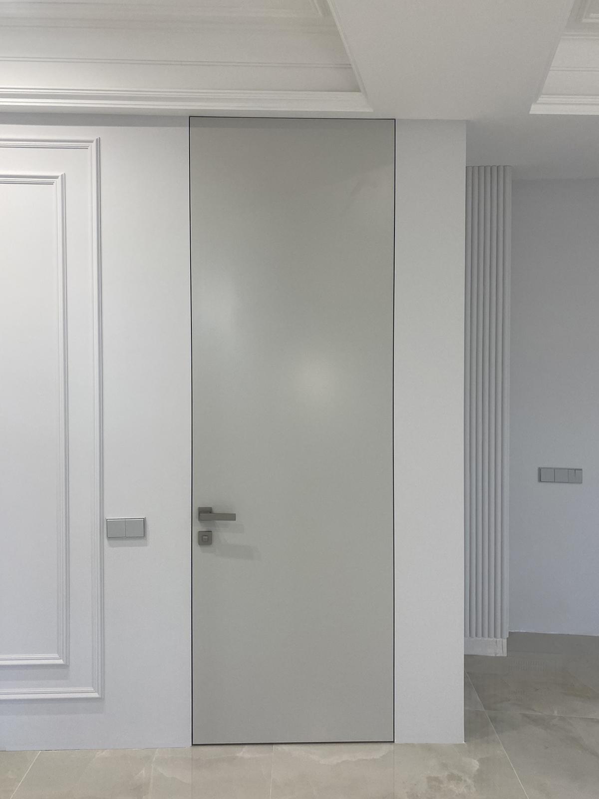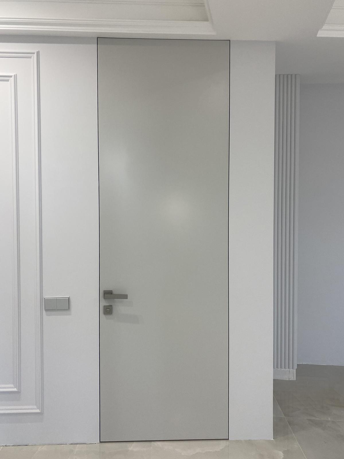 Sistemul de uși cu toc ascuns poate fi folosit pentru perete tencuit sau perete din rigips. Ușa este fabricată din lemn natural și finisată cu grunt, ceea ce deschide noi perspective în designul interior. Această metodă inovatoare de finisare a ușilor permite crearea celor mai deosebite și creative modele de uși. Puteți ajusta finisarea ușii cu pereții sau pardoseala din interior. Materiale Lemn/HDF/Grunt/Fagure de stabilizare sau PAL perforat Opțiuni finisaje Grunt Dimensiuni Poate fi realizată în orice dimensiuni la comandă, nu mai înaltă de 270 cm. Complectație set Blatul, cutia, balamale, broasca Garanție 5 ani