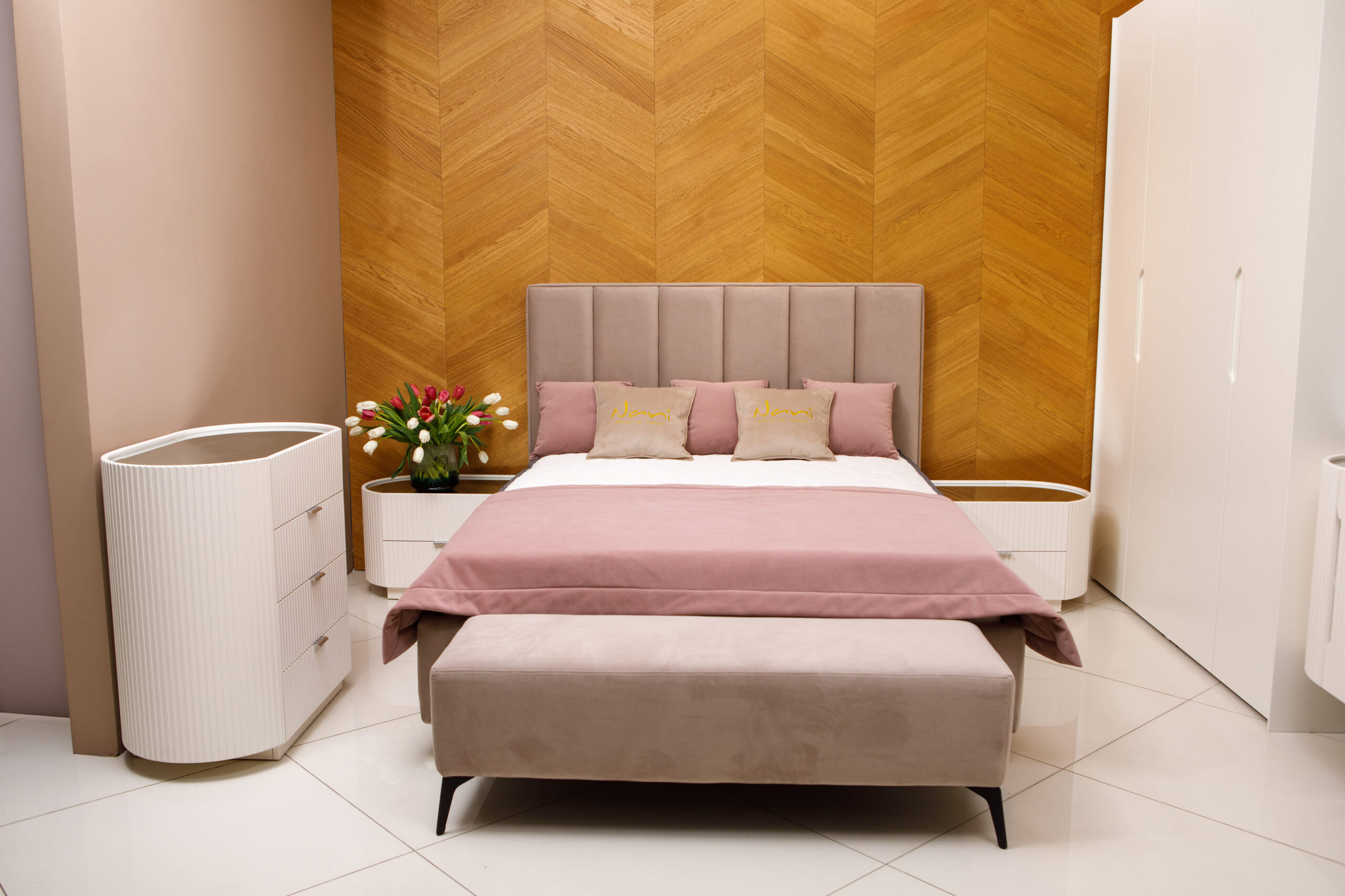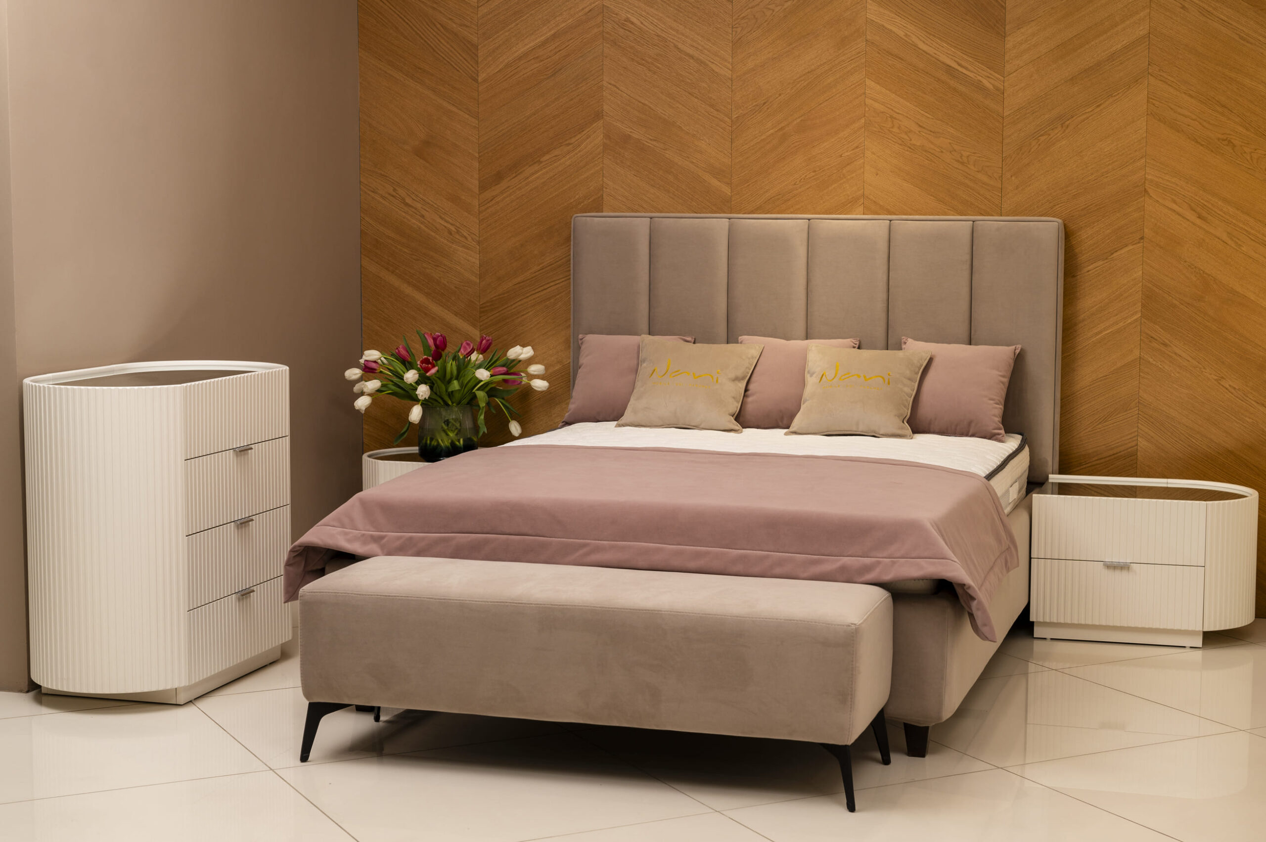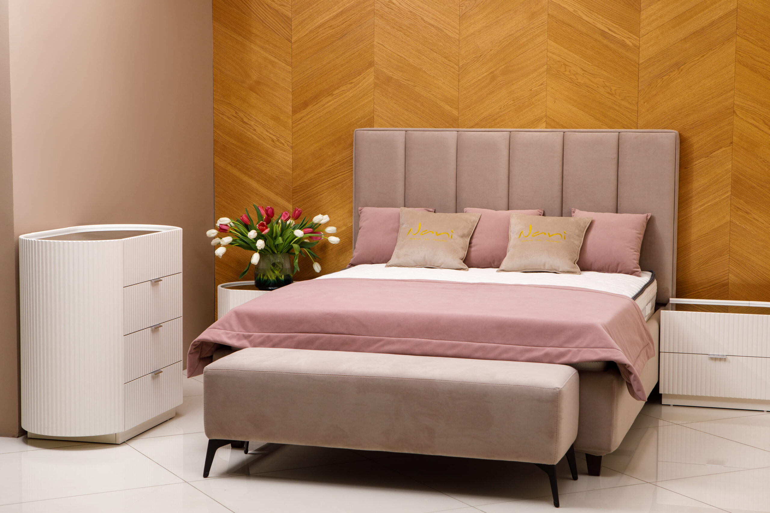 Patul Dio, este tapiţat în stofă de catifea cu tăblia moale, iar liniile de pe spetează se combină cu frezele de pe mobila corp a acestui set. Culorile ţesăturii pot fi alese dintr-o gama largă. Lateralele patului sunt îmbrăcate în husă detaşabilă, care se curăţă foarte ușor. Dimensiuni 170x220cm, 190x220 cm, 210x220 cm, 230x220 cm Spațiu de dormit 140x200 cm, 160x200 cm, 180x200 cm, 200x200 cm Ladă depozitară este Compoziție interiora PAL/LemnStofa/Poliuretan/Lamele Garanție 24 luni