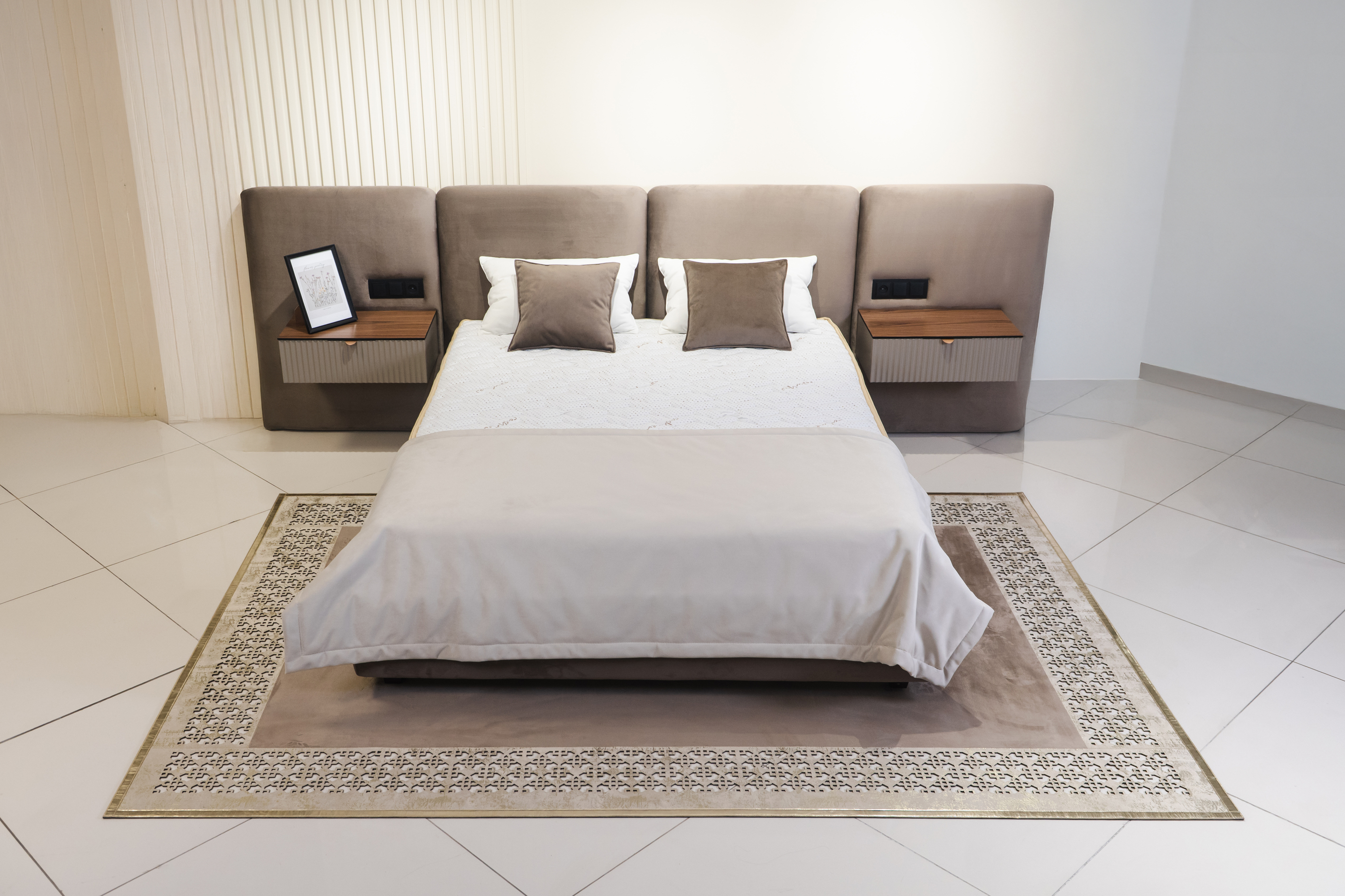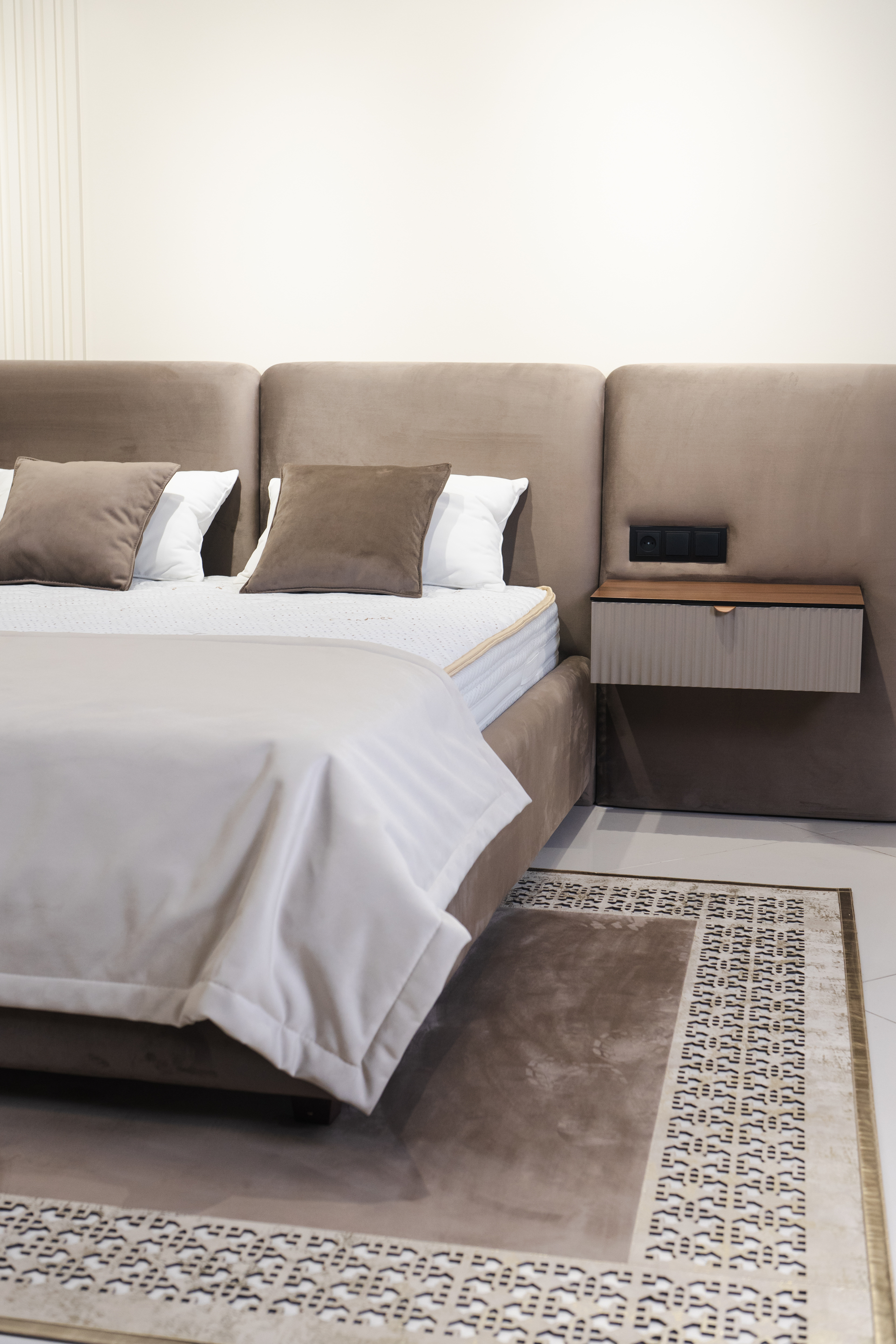 Patul Palas, este tapiţat în stofă de catifea cu tăblia moale, iar liniile de pe spetează se combină cu frezele de pe mobila corp a acestui set. Culorile ţesăturii pot fi alese dintr-o gama largă. Lateralele patului sunt îmbrăcate în husă detaşabilă, care se curăţă foarte ușor. Dimensiuni 320x220cm, 340x220 cm, 360x220 cm, 380x220 cm Spațiu de dormit 140x200 cm, 160x200 cm, 180x200 cm, 200x200 cm Ladă depozitară este Compoziție interiora PAL/LemnStofa/Poliuretan/Lamele Garanție 24 luni