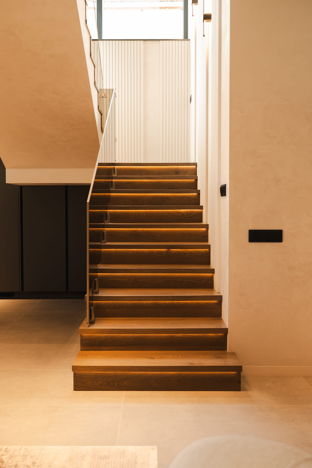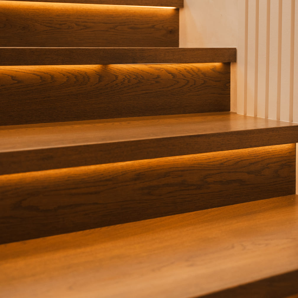 Parchet pentru scări Plăcile de parchet pentru placarea scărilor de interior sunt confecționate din lemn de din stejar, frasin sau nuc. Parchetul este dublu stratificat și acoperit cu ulei natural. Sunt disponibile în toate culorile, formatele și finisajele din gama noastră și au excelentă rezistență la trafic intens.