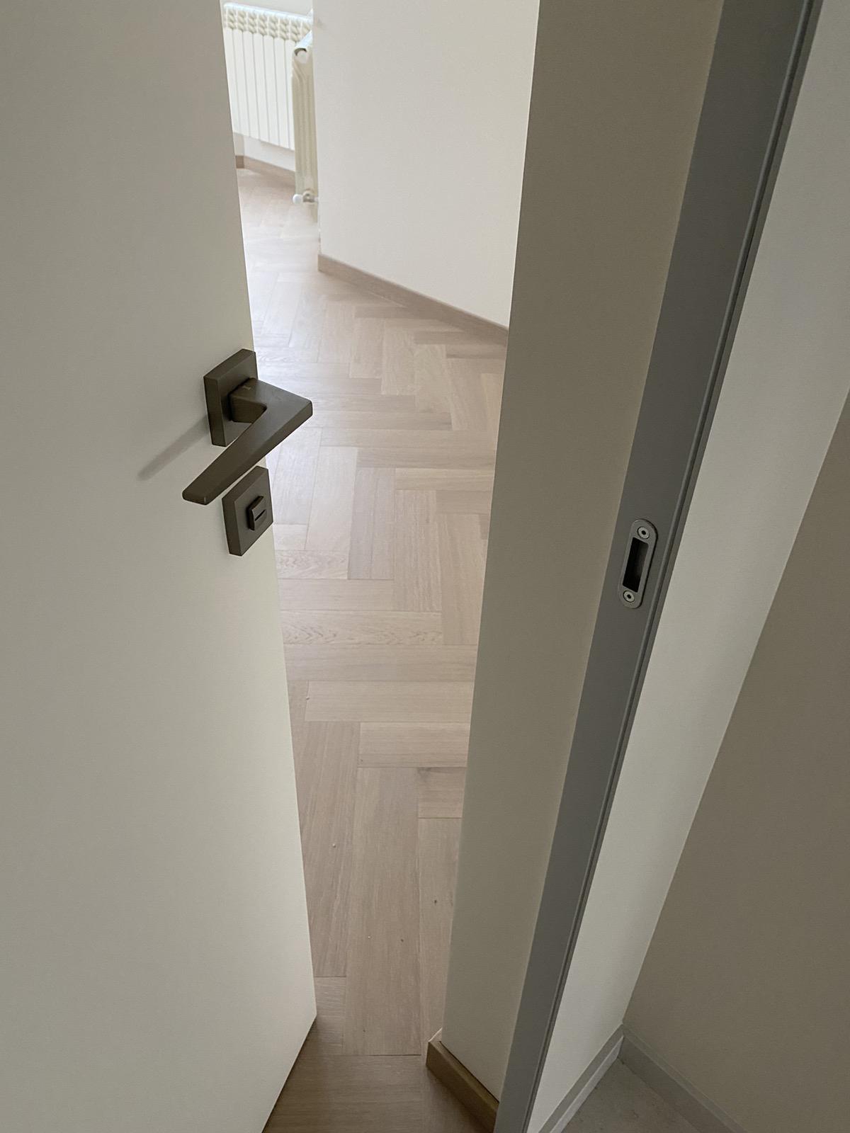 Sistemul de uși cu toc ascuns poate fi folosit pentru perete tencuit sau perete din rigips. Ușa este fabricată din lemn natural și finisată cu grunt, ceea ce deschide noi perspective în designul interior. Această metodă inovatoare de finisare a ușilor permite crearea celor mai deosebite și creative modele de uși. Puteți ajusta finisarea ușii cu pereții sau pardoseala din interior. Materiale Lemn/HDF/Grunt/Fagure de stabilizare sau PAL perforat Opțiuni finisaje Grunt Dimensiuni Poate fi realizată în orice dimensiuni la comandă, nu mai înaltă de 270 cm. Complectație set Blatul, cutia, balamale, broasca Garanție 5 ani