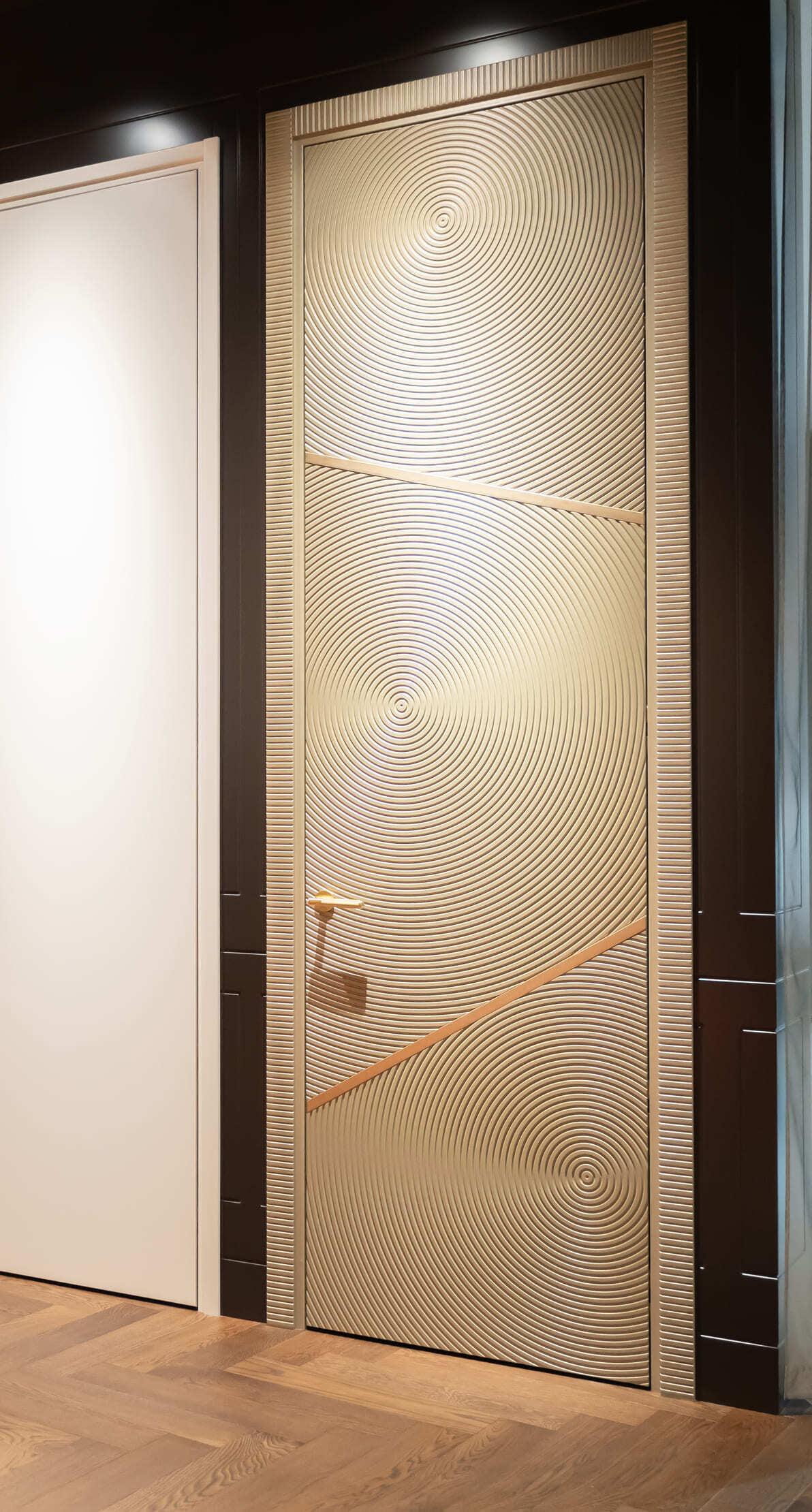 O lecție hipnotizantă de design: blat cu freze în formă de sfere – ușa GUCCI este pentru cei care vor să descopere noi dimensiuni ale designului interior. Vopsită în patină aurie, această piesă alungă orice urmă de banal, indiferent de spațiul în care este instalată.