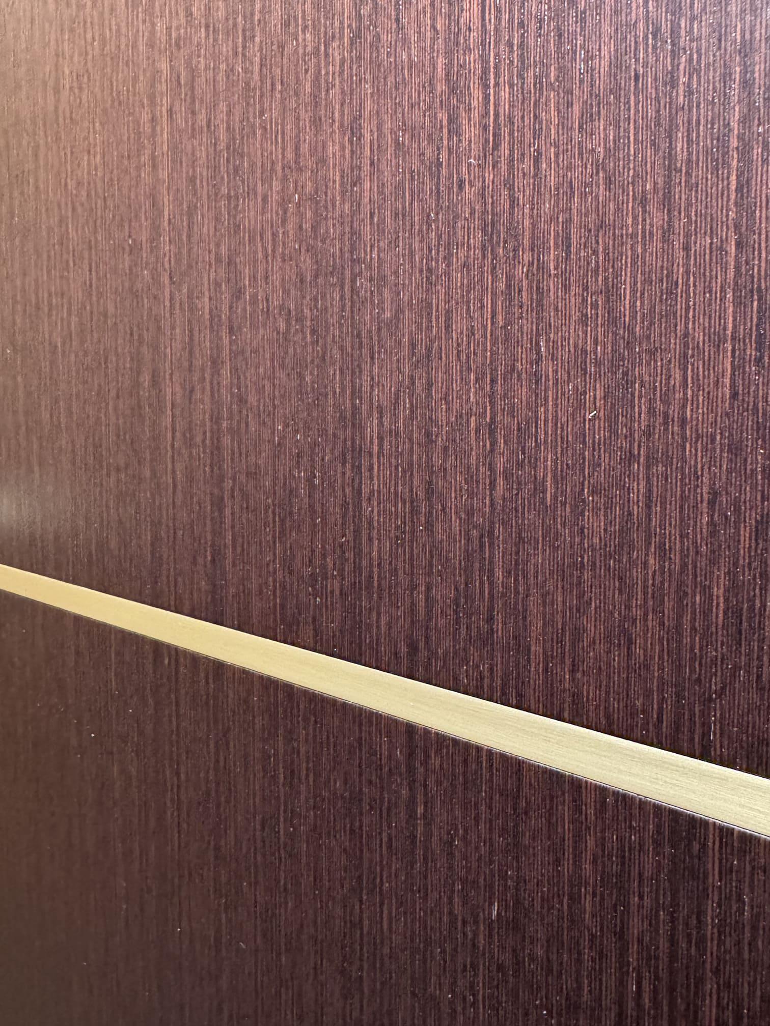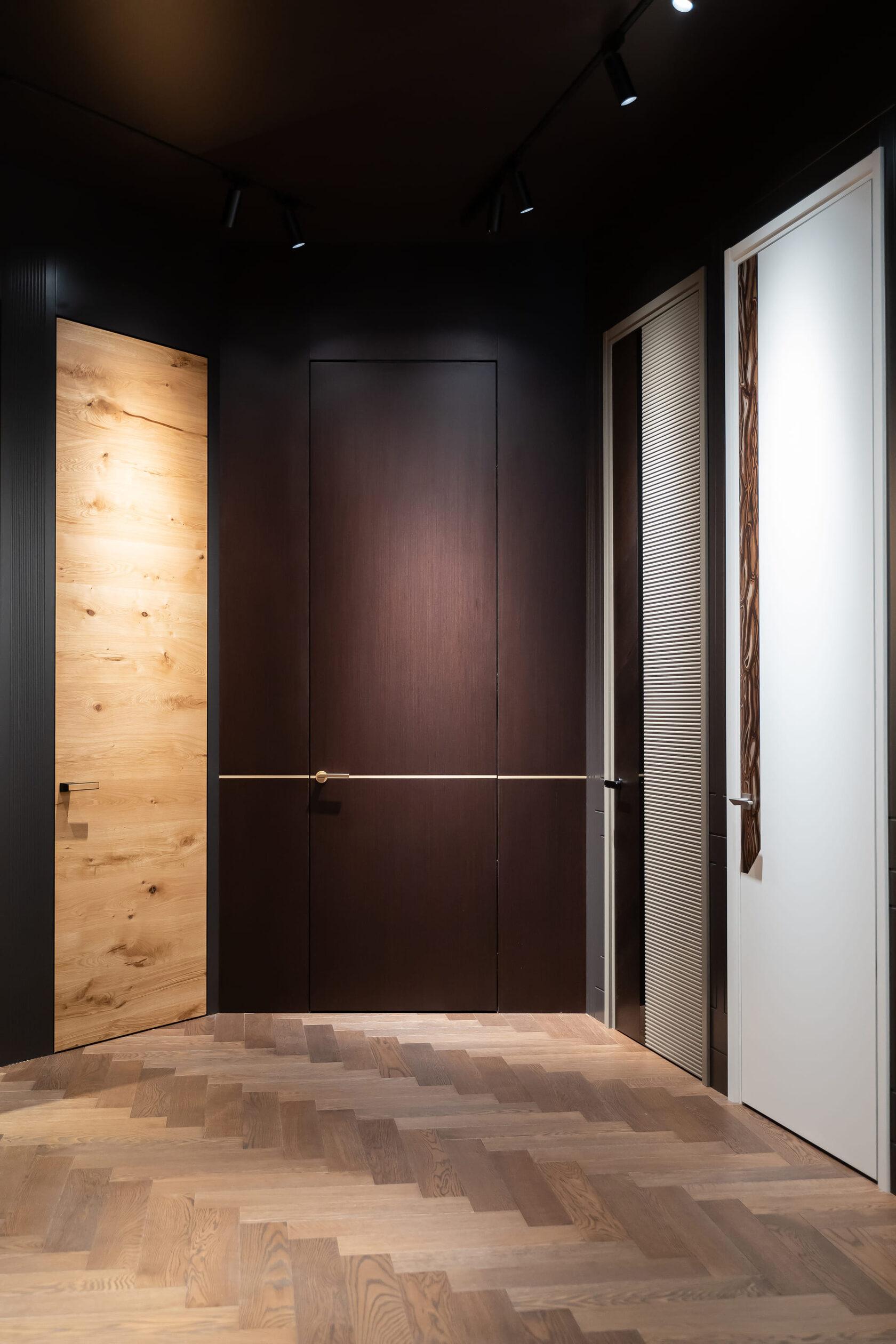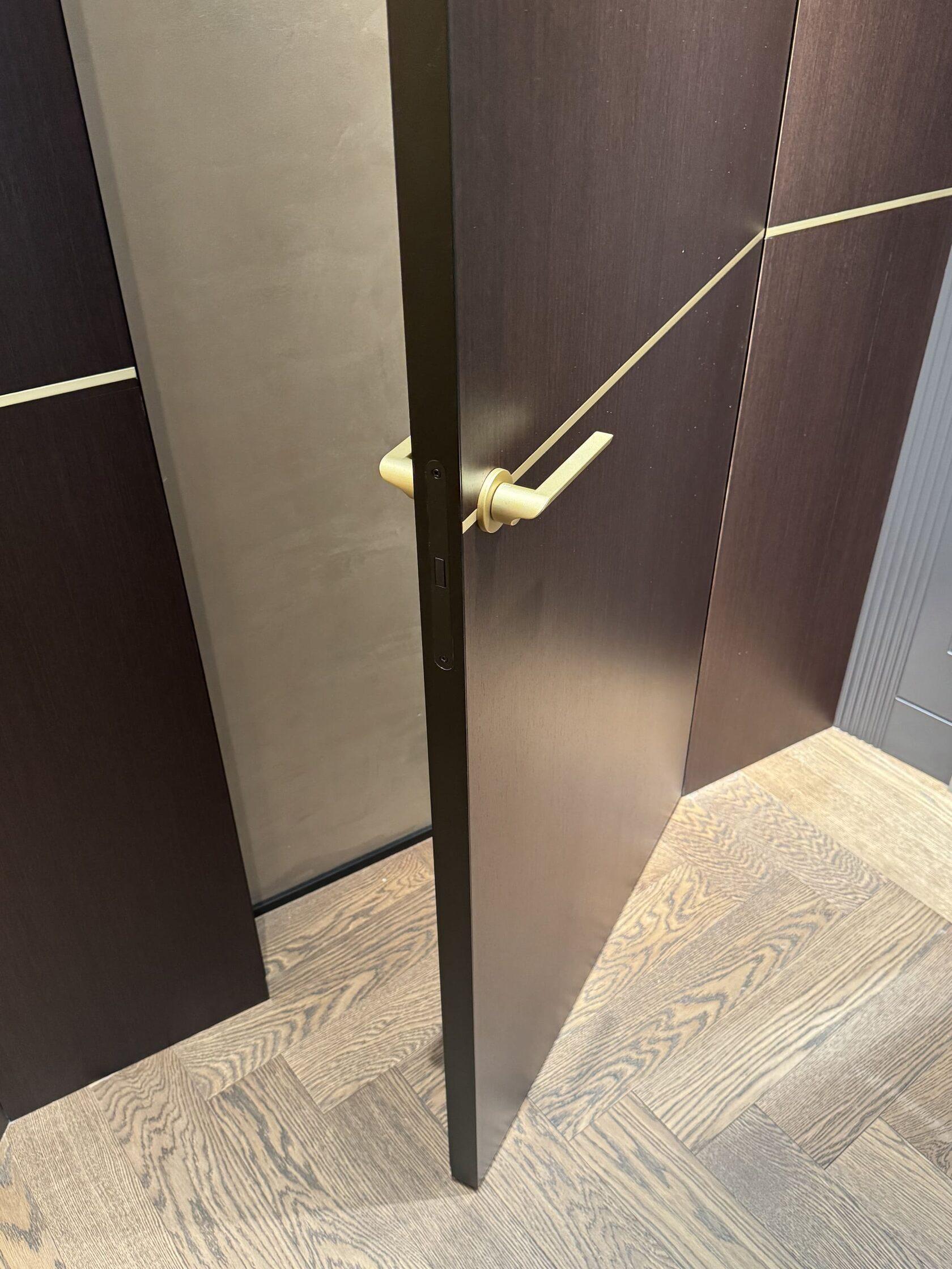 Culoarea ciocolatei s-a transpus cu succes pe blatul de furnir din stejar. Inspirația metalică din decorul ușii îi conferă statutul de operă de artă pentru orice interior. Rezistent la absorbția apei și la condiții vitrege, acest furnir oferă o durabilitate ridicată în fața diverșilor factori externi. Flexibilitatea tăieturii sale creează un design monocrom, minimalist și elegant.