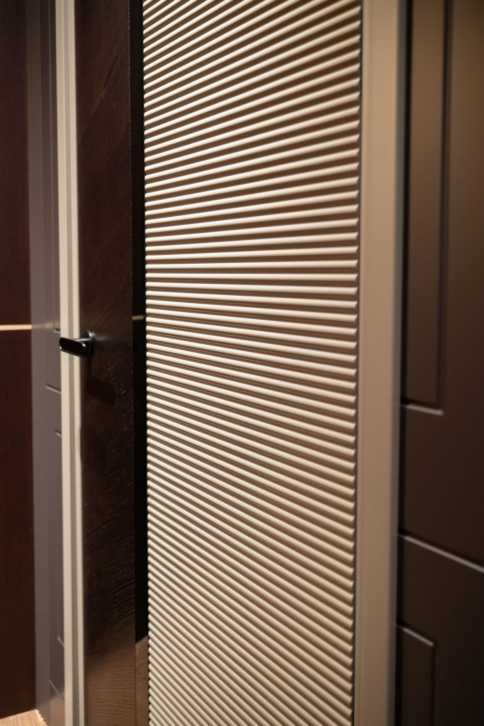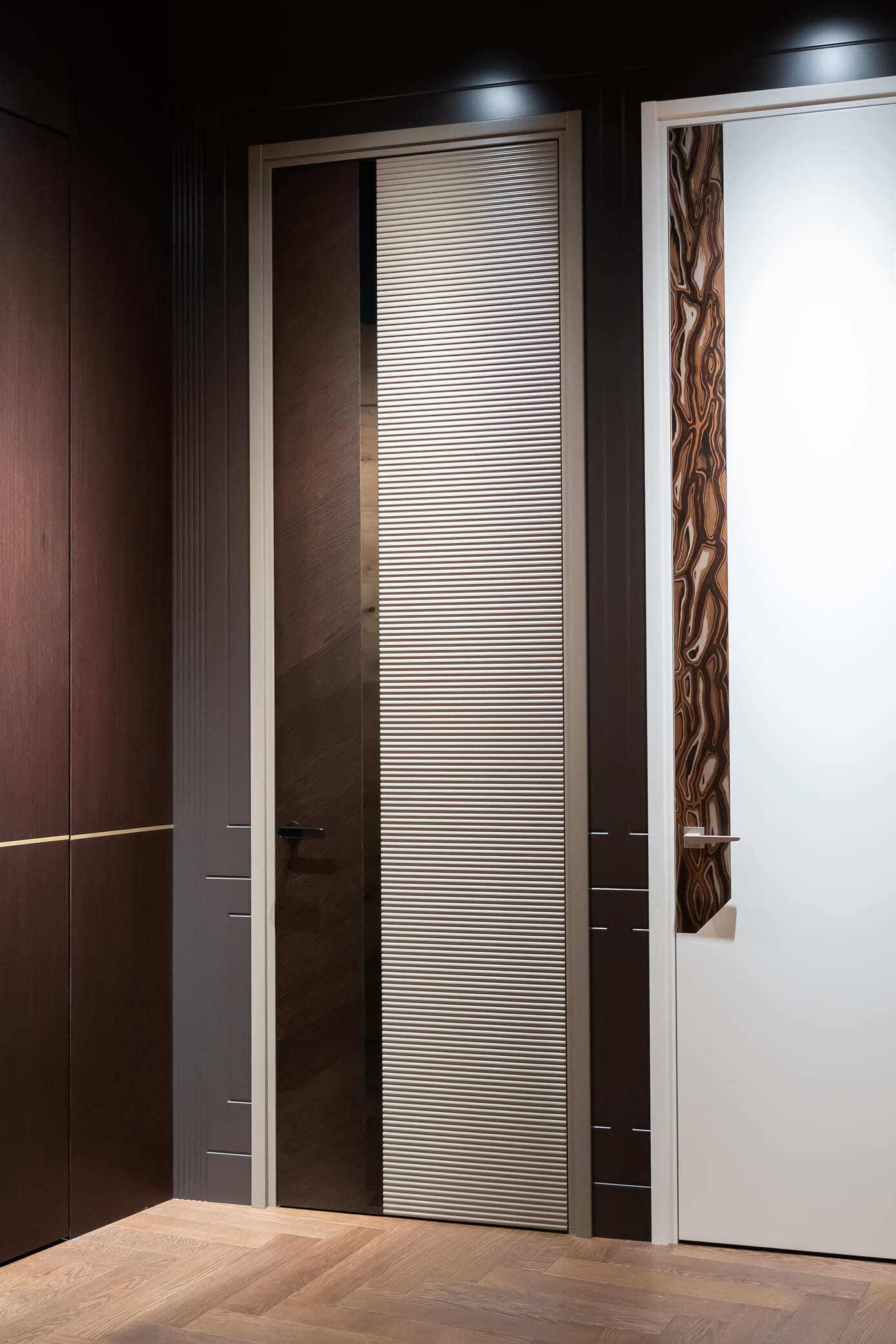Culoarea ciocolatei s-a transpus cu succes pe blatul de furnir din stejar. Inspirația oferită de sticla neagră din decorul ușii îi conferă statutul de operă de artă pentru orice interior. Liniile drepte creează un design monocrom, minimalist și elegant.