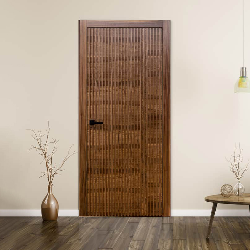 Ușile lamelare aduc un aspect natural și neobișnuit în orice amenajare de interior. Lamelele permit să creăm diverse interpretări pe blatul ușii, pentru a o personaliza conform designului și interiorului planificat. Acest model poate fi combinat perfect în amenajări de interioare moderne în stil Loft. Puteți alege lamele cu variații de culori și texturi, pentru a se potrivi cu pardoseala. Materiale Lemn/HDF/Fagure de stabilizare sau PAL perforat Opțiuni finisaje Furnir/Lac/Lamele Complectație set Blat, cutie, pervaze, balamale, broasca Garanție 5 ani