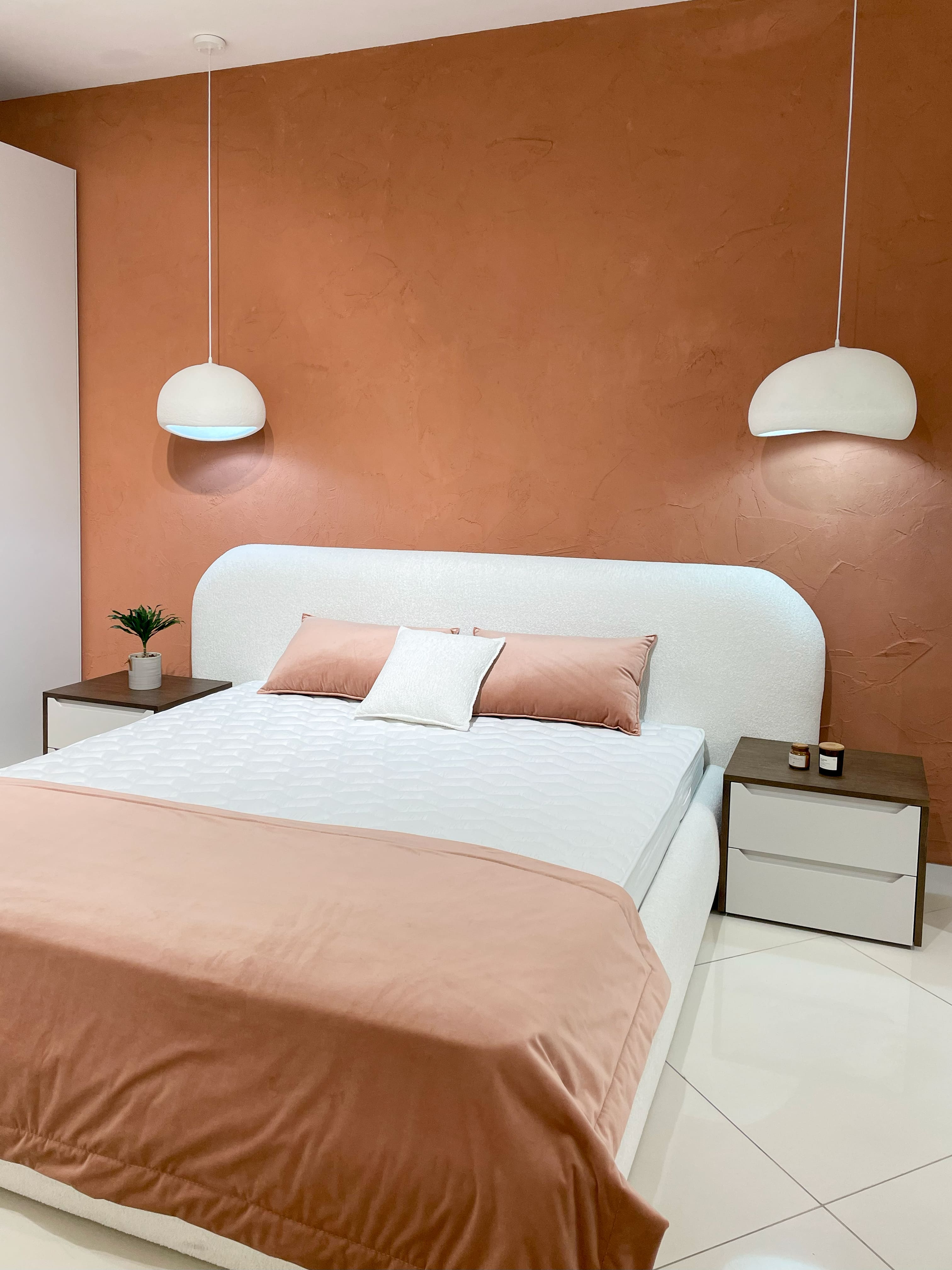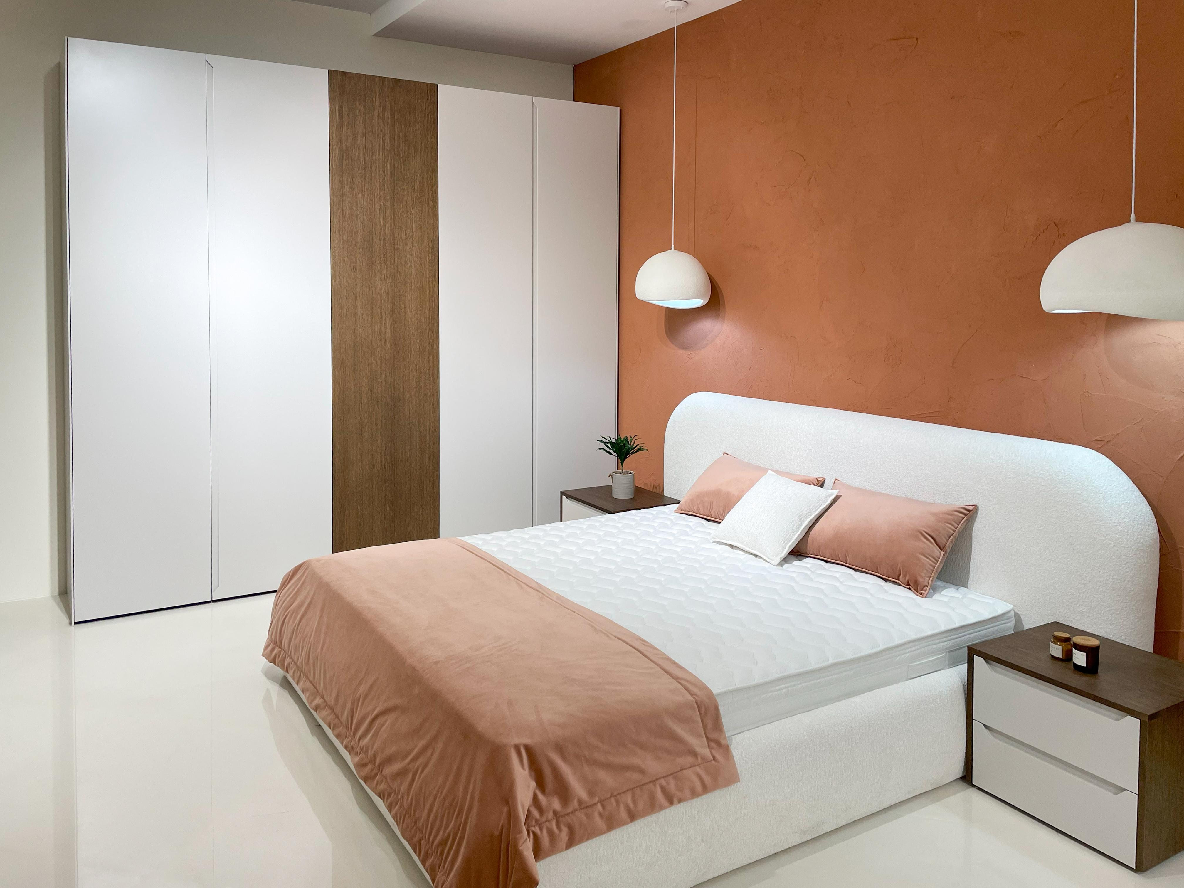 Кровать Кровать с мягким изголовьем, в основе которого memory-пена, что позволяет удобно облокачиваться и чувствовать себя комфортно даже на протяжении нескольких часов. Цвет ткани можно выбрать из широкой палитры. Боковины кровати покрыты съёмными чехлами, которые при необходимости легко стирать.